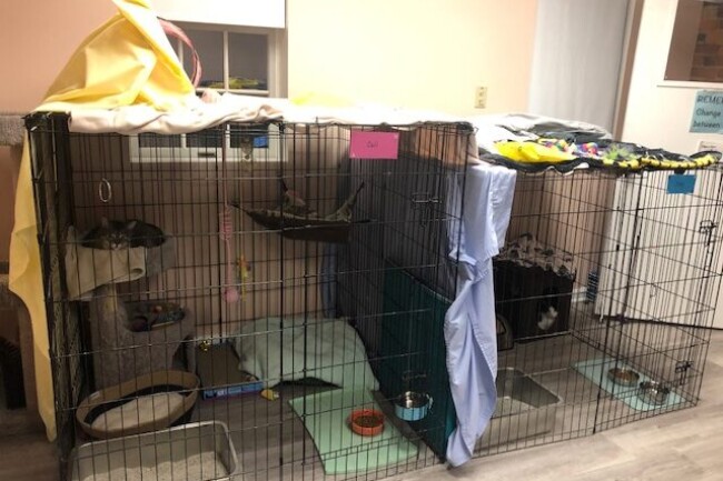 A quarantine room has been established for very young kittens, who are expected to be there about two weeks for observation, and if necessary, veterinary treatment prior to going into a foster home. Adult cats in need of isolation and veterinary treatment will use the room, too.