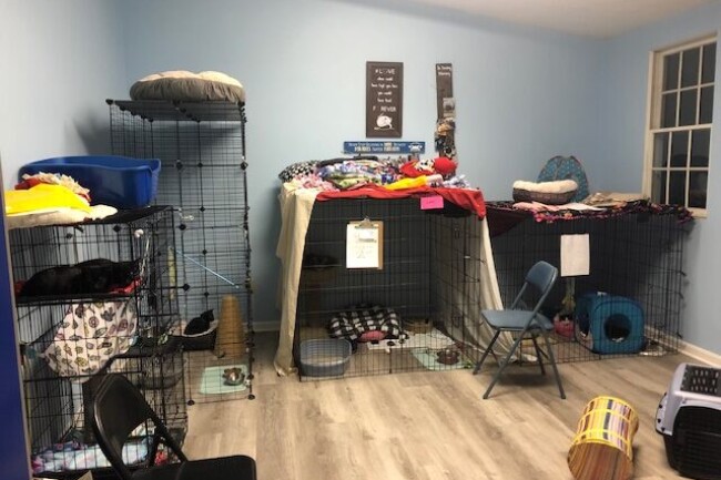 A quarantine room has been established for very young kittens, who are expected to be there about two weeks for observation, and if necessary, veterinary treatment prior to going into a foster home. Adult cats in need of isolation and veterinary treatment will use the room, too.